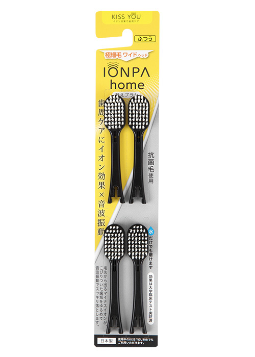替えブラシ 抗菌極細毛 ワイド ふつう KISS YOU/IONPA home ブラック D96BK [4本入]