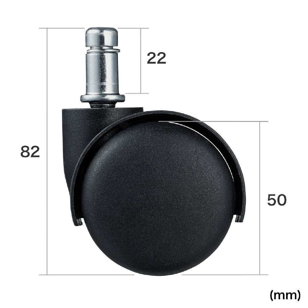 カーペット床上での使用に適したナイロン製のキャスター。細径タイプ
