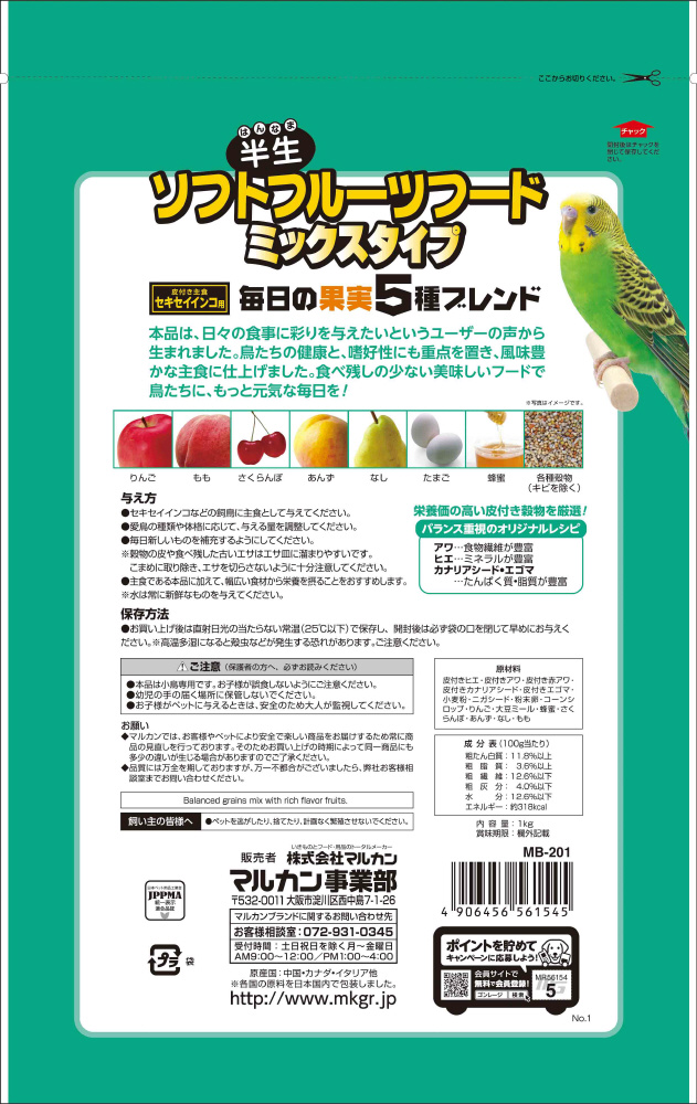 毎日の果実5種ブレンド セキセイインコ用 1kg