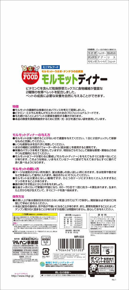 モルモットディナー 800g