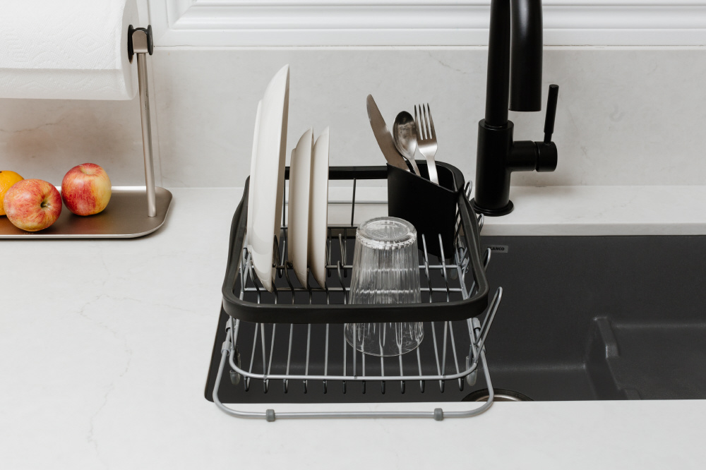 シンクに渡して設置する事もできる大容量のディッシュラック