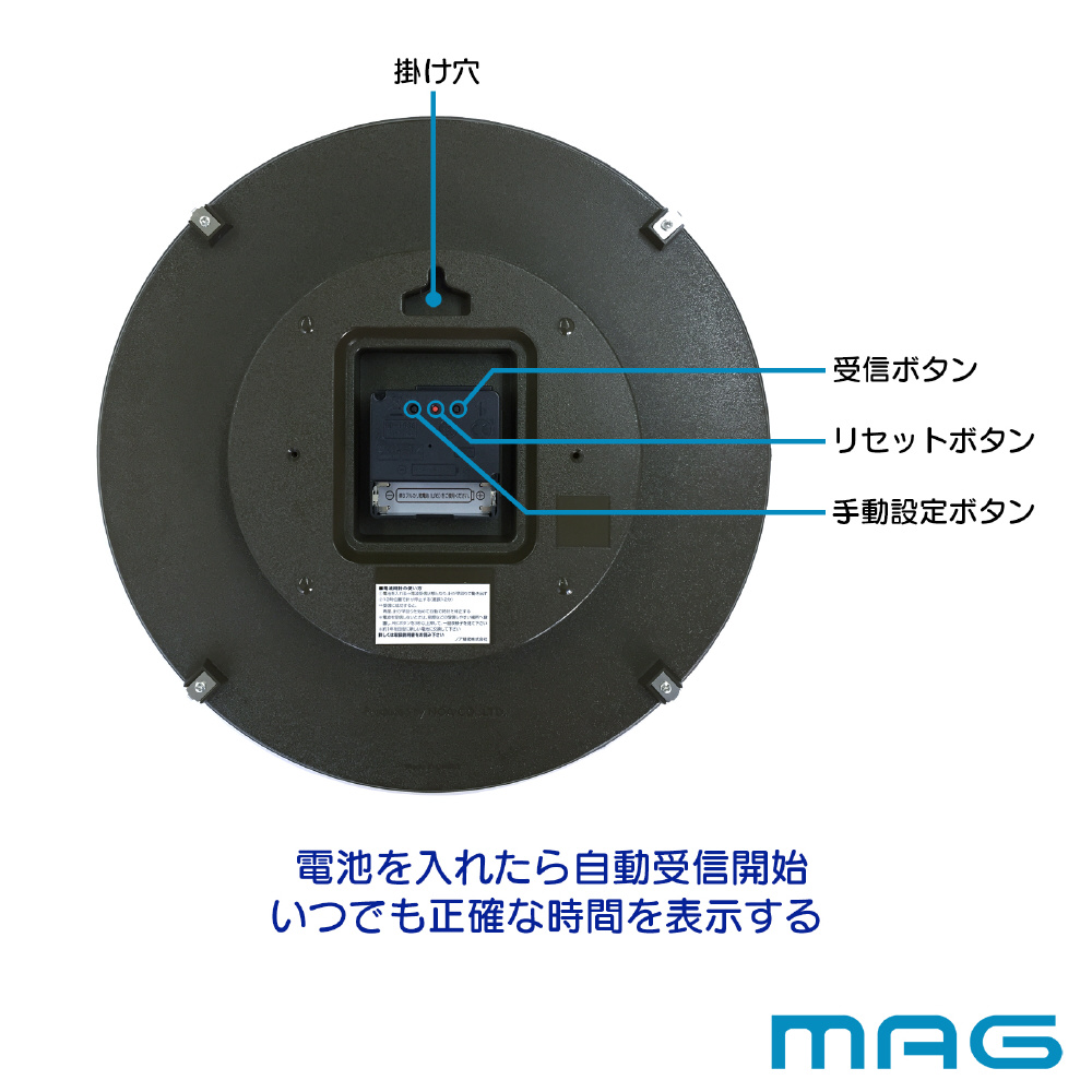 電波自動受信、夜間秒針停止(午後10時〜午前6時)、立体文字、球面ガラス