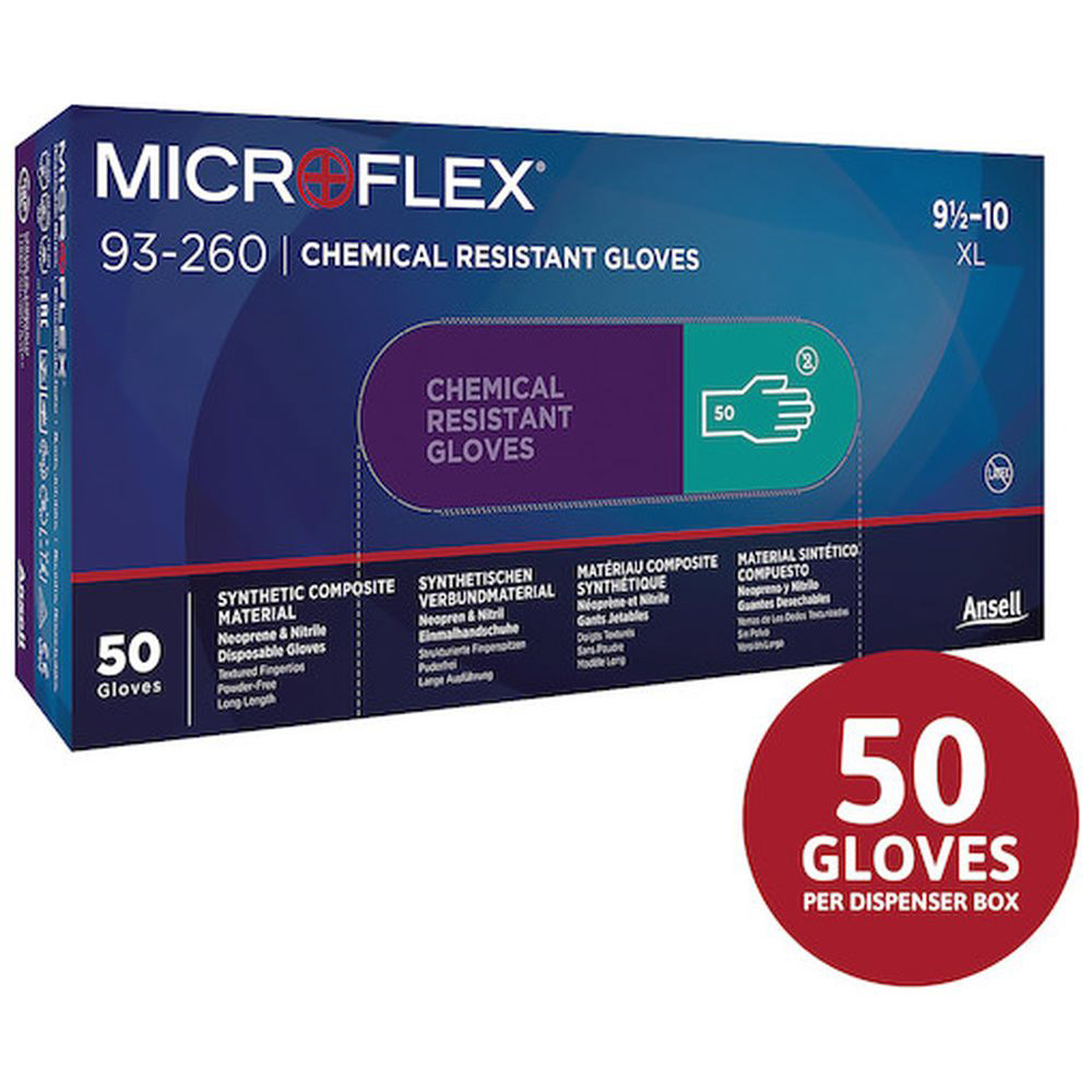 Microflex 93-260 ネオプレンゴム使い捨て手袋 50枚入 XSサイズ グリーン 93-260-6