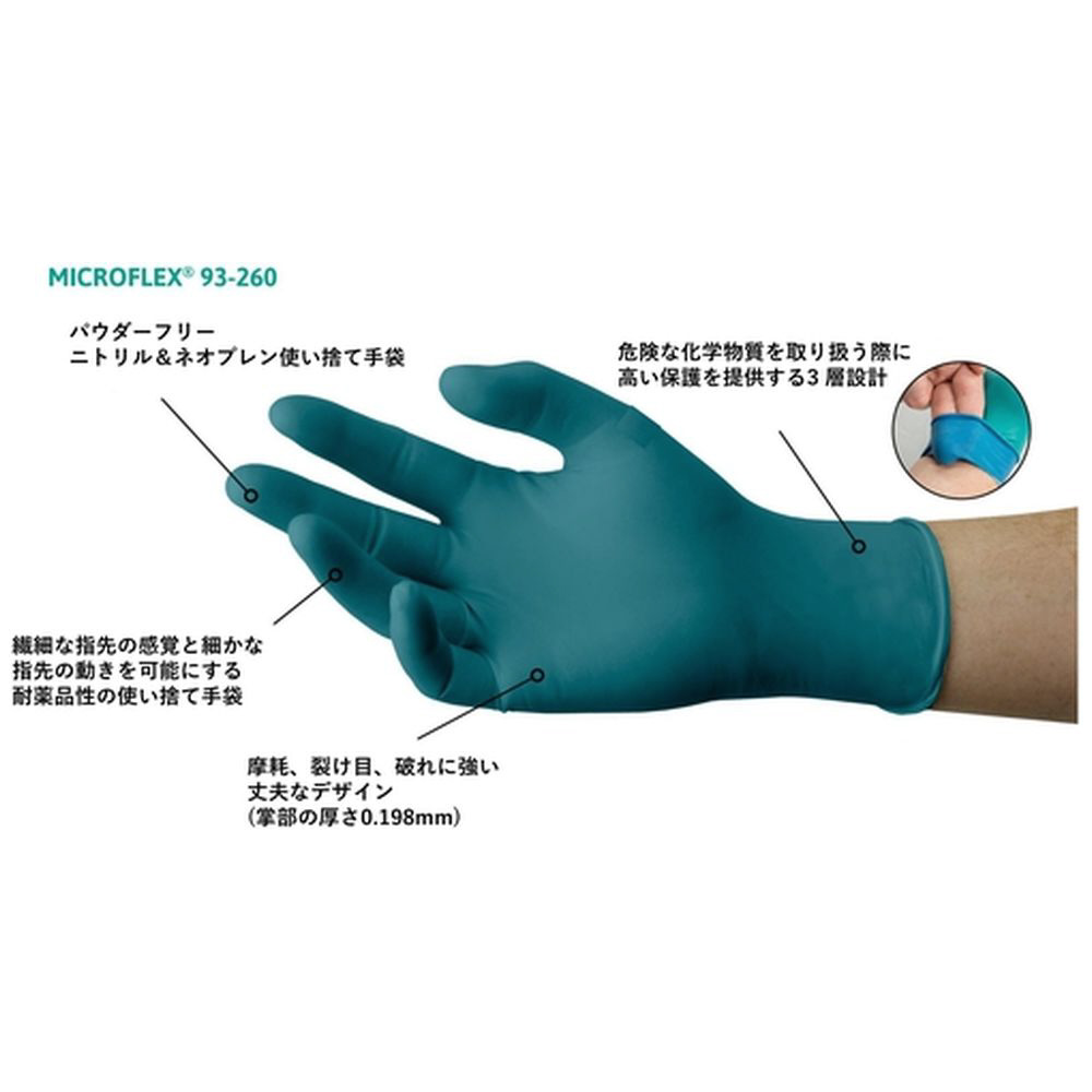 Microflex 93-260 ネオプレンゴム使い捨て手袋 50枚入 Mサイズ グリーン 93-260-8