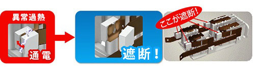 差込口の温度が150℃になると、発煙に至る前に自動的に通電を遮断し、火災事故を未然に防ぎます。