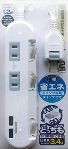 ■3.4A リバーシブルUSBポートが付いたスイッチ付きの電源タップ。