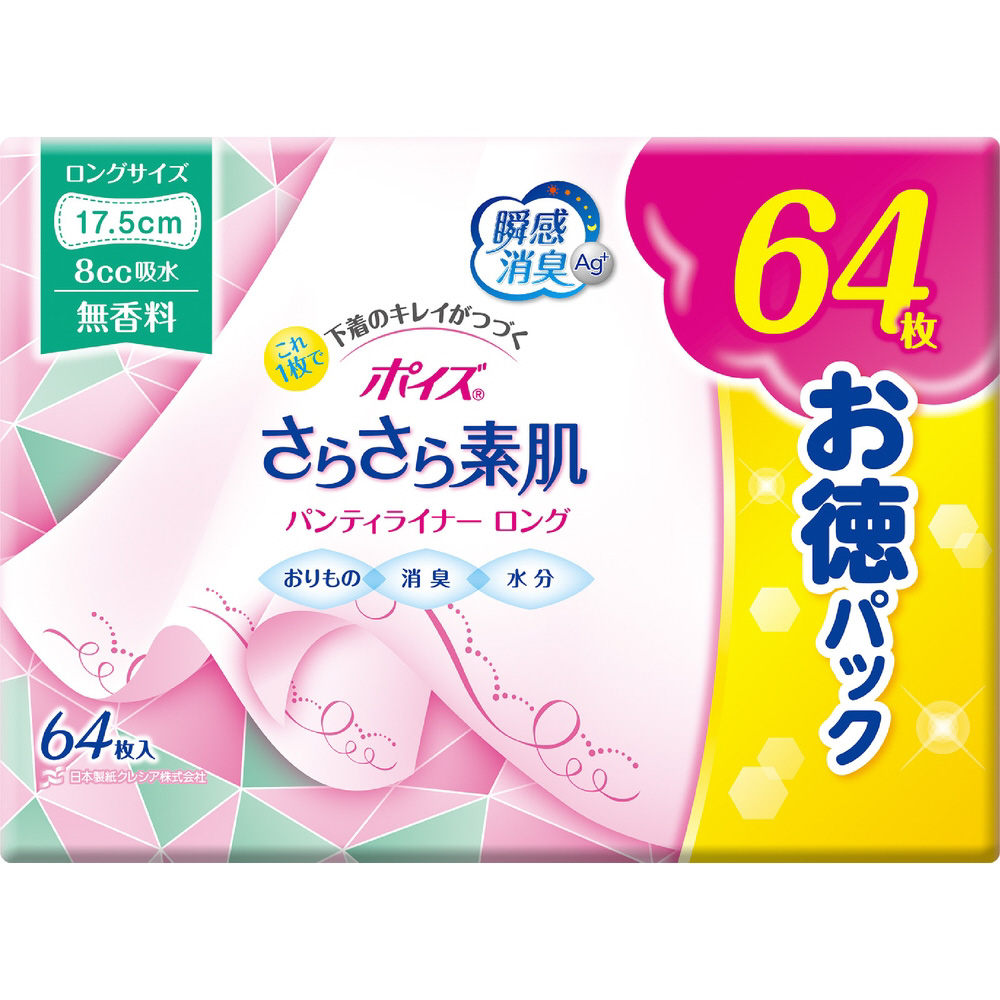 ポイズ さらさら素肌 パンティライナーロング175 8cc 無香料 お徳用パック 64枚 ポイズ