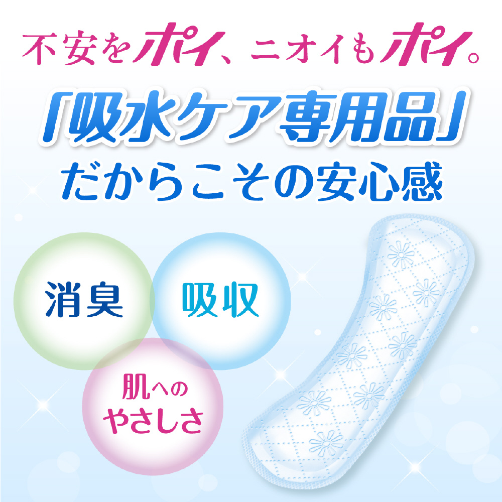 「ポイズ さらさら素肌 吸水パンティーライナー」は、軽い尿モレ(尿漏れ)で悩んでいる方や、吸水ケアを昼用ナプキンやおりものシートで代用している方におすすめな吸水ライナー(吸水ナプキン)です!
