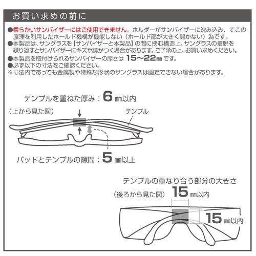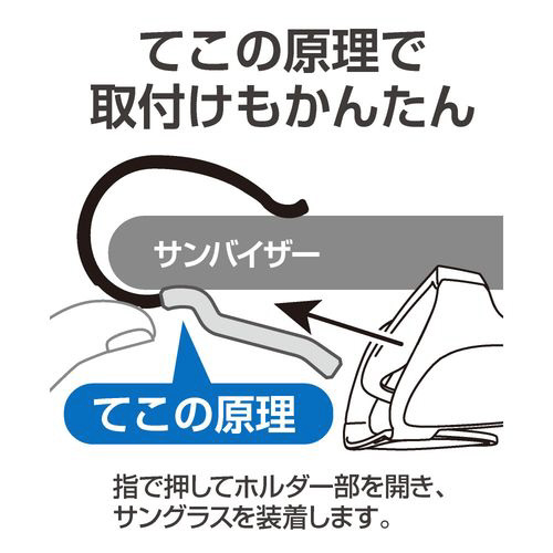 ●車の純正サンバイザーと本製品の間にサングラスを挟み込む構造です。