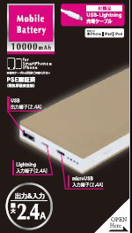 USB出力・ライトニング入力・micro USB入力に対応しています。
