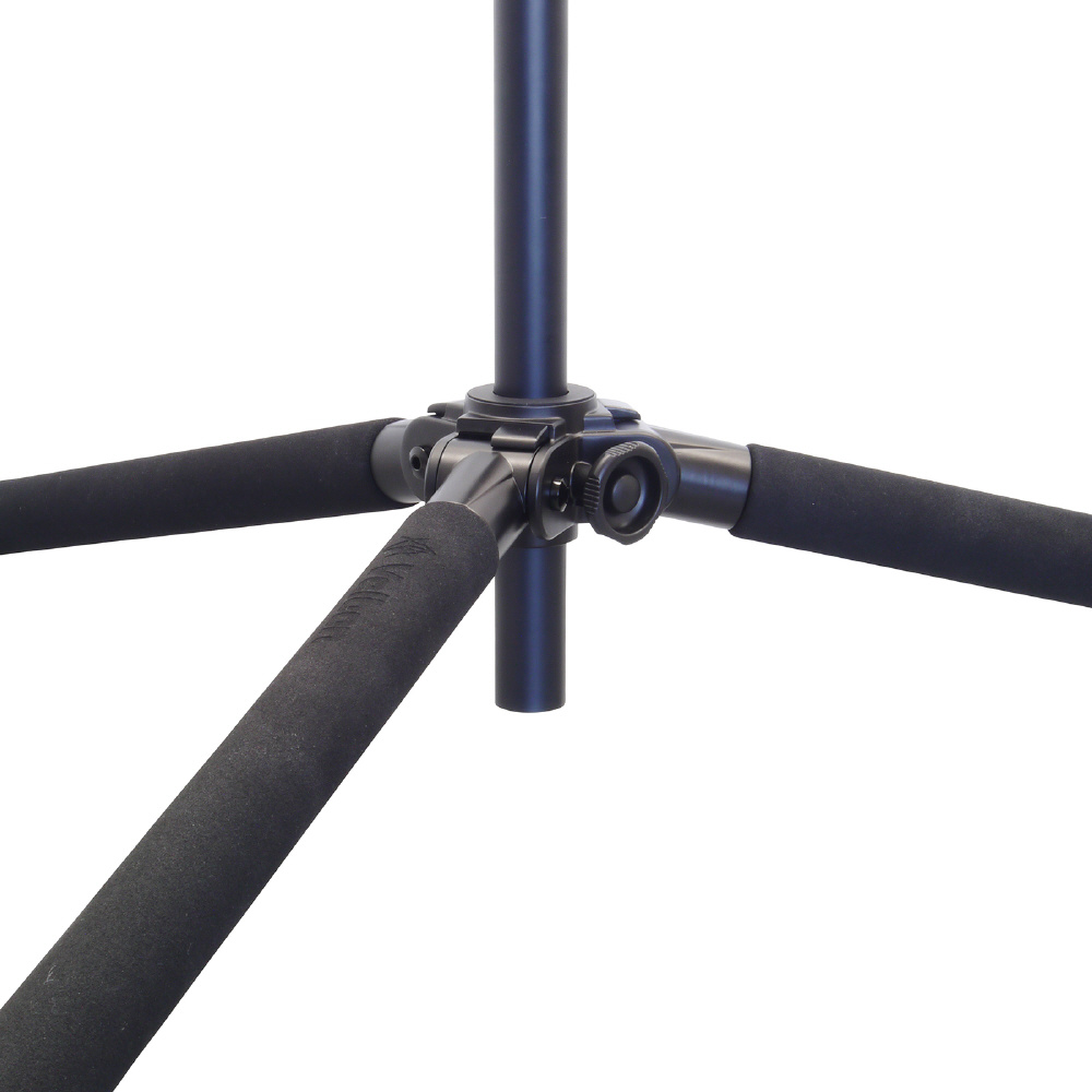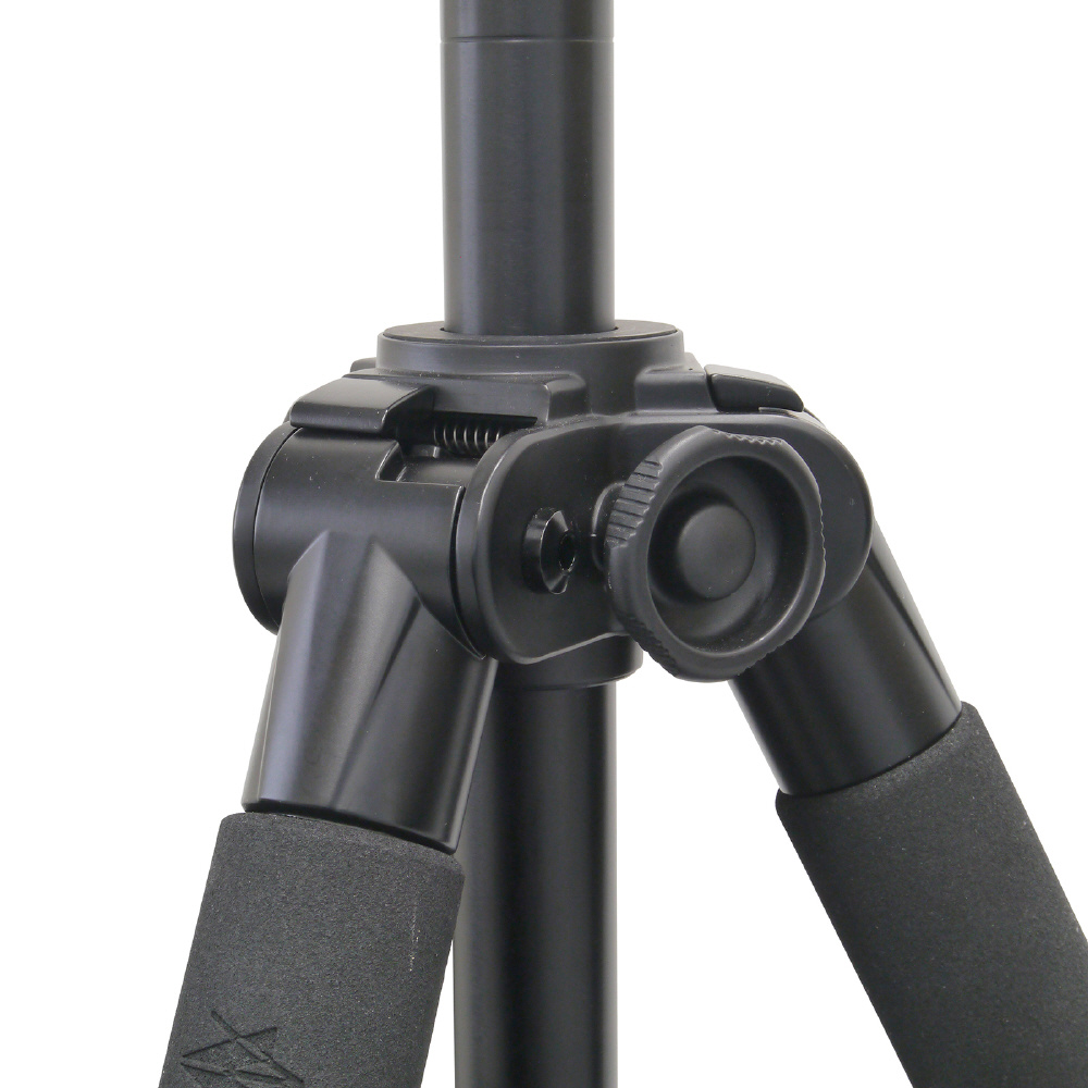脚パイプ接合部のネジを回すことで伸縮をロックする方式を採用。どの方向からでも同じ動作で伸縮操作を行えるので手探りのような状態でも操作が可能。