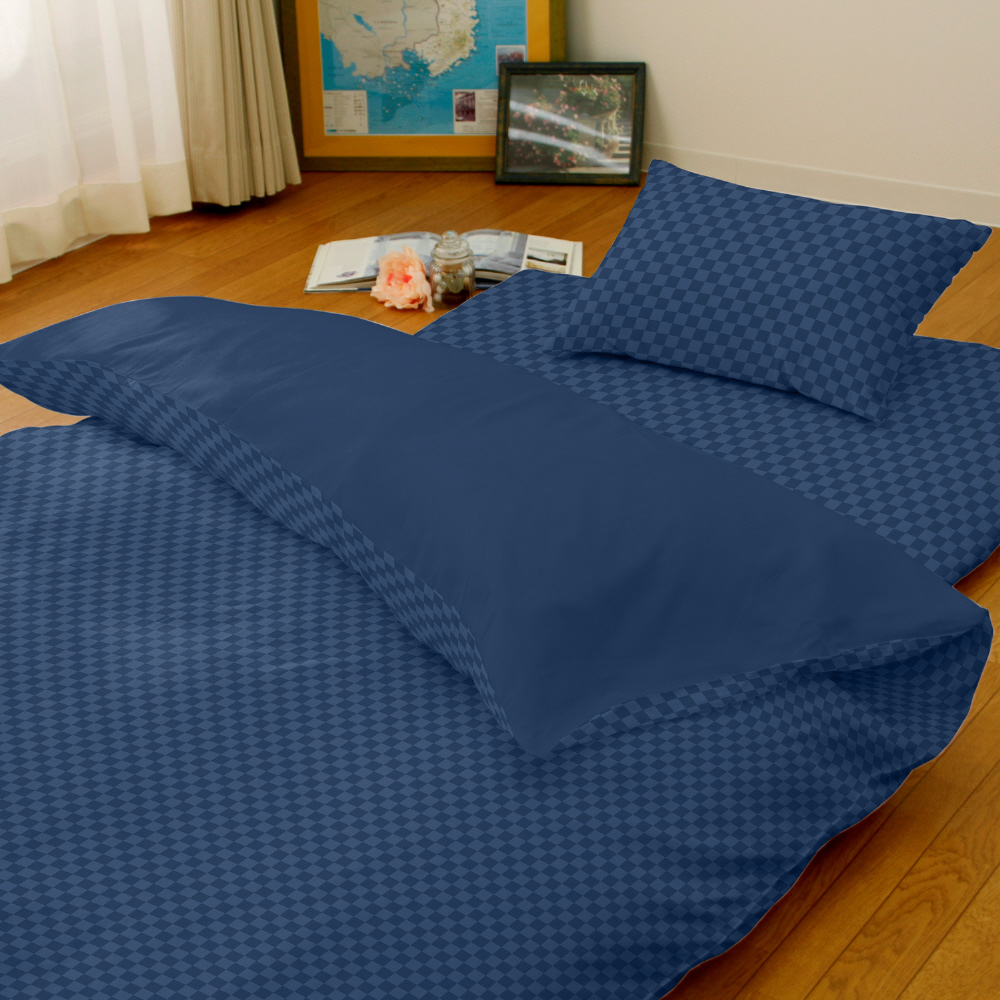 メリーナイト 敷き布団カバー 市松柄 ネイビー シングルロング 約105×215cm 光沢感 和モダン 速乾 シワになりにくい 洗える PE13101-72 メリーナイト(MerryNight) ネイビー PE13101_72 [シングルロングサイズ]