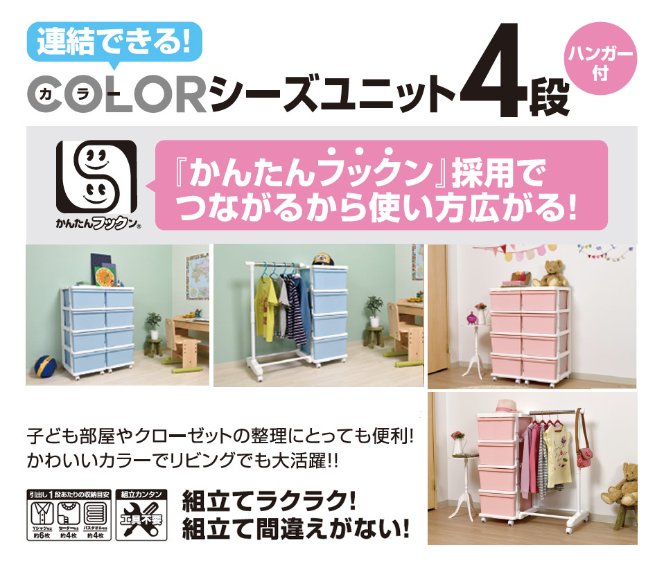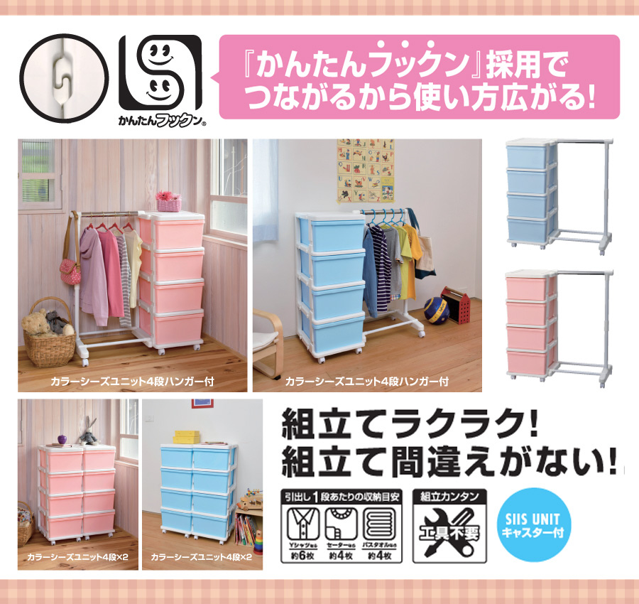 シーズ ユニット 4段 ハンガー付 ピンク