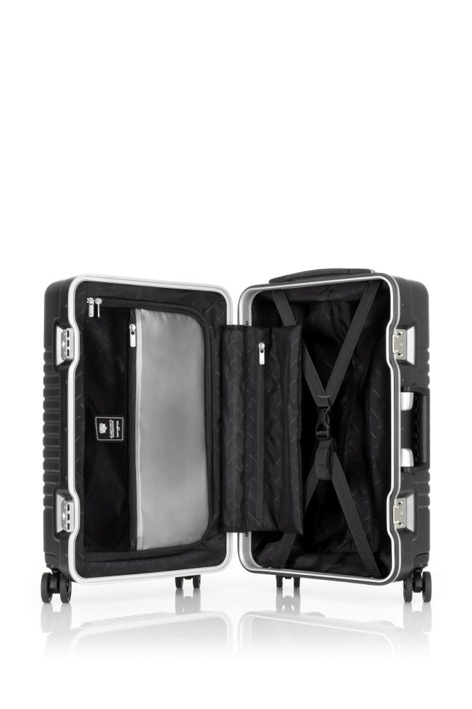 「インターセクト」は光沢のある外観が美しいアルミフレームのスーツケース。