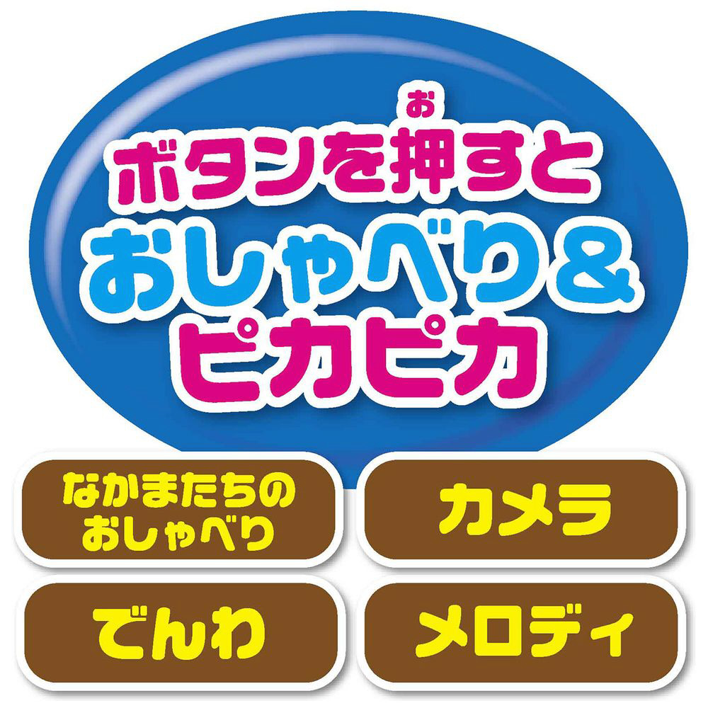 マイクにむかって「もしもし」とはなしかけるとおしゃべりや効果音が反応してお返事してくれる機能付きです。