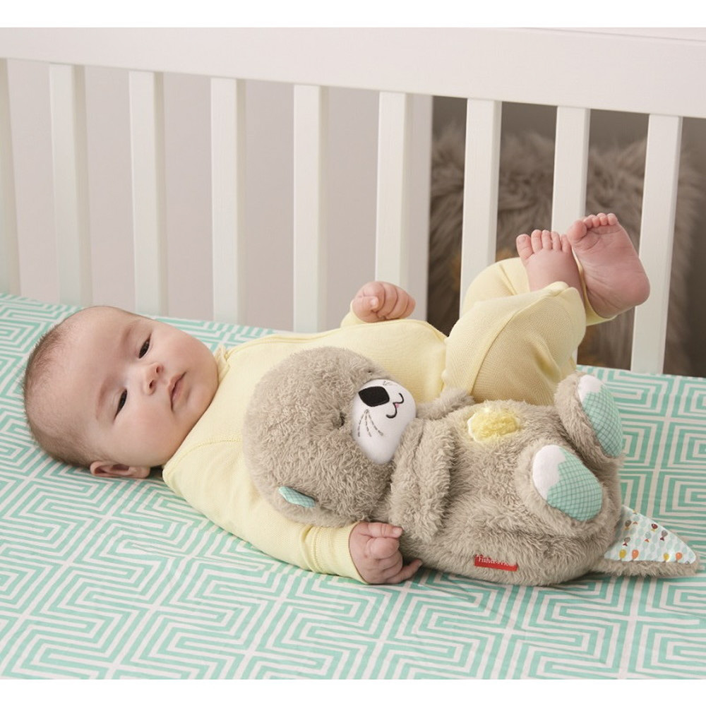 寝かしつけをサポートするかわいいおともだち. ふわふわラッコのおなかがゆっくり上下に動いて、ほんのりライトアップ!