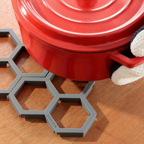 ハチの巣をモチーフにしたデザインのシリコーン製の鍋敷きです。毎日の食卓にさりげなく幾何学模様を取り入れることで、モダンな雰囲気を演出できます。
