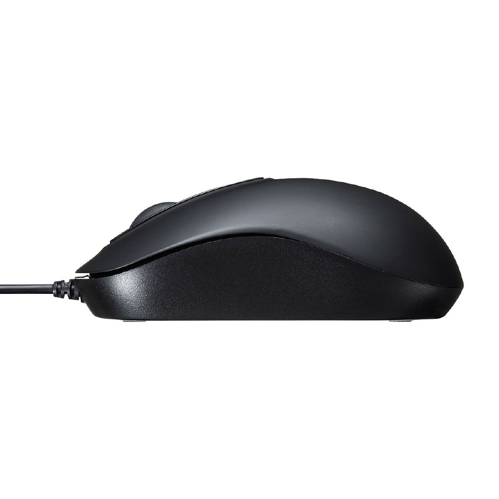 光沢面に強いレーザーセンサー搭載の有線マウス。まとめ買いに最適な紙箱パッケージ。ブラック。