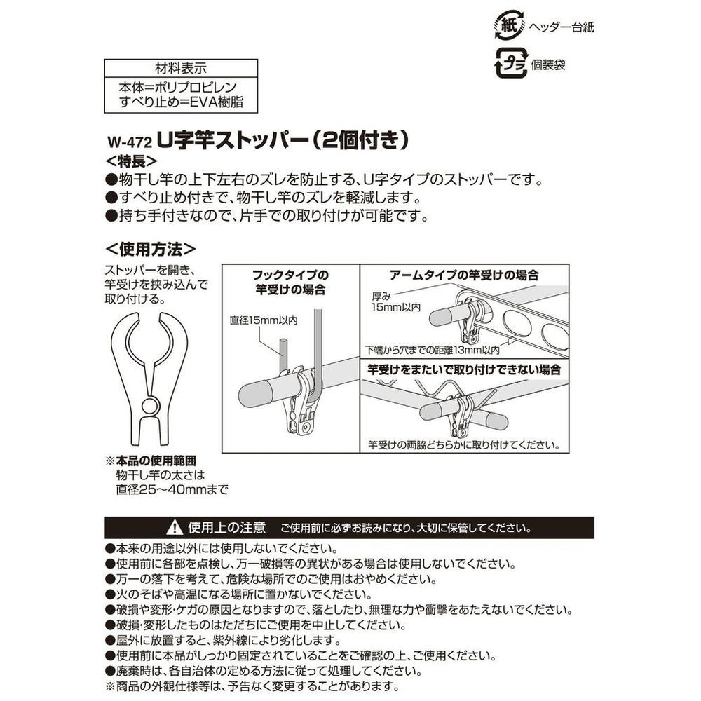 物干し竿がズレたり外れたりするのを防ぐ竿ストッパーです。2個入り。