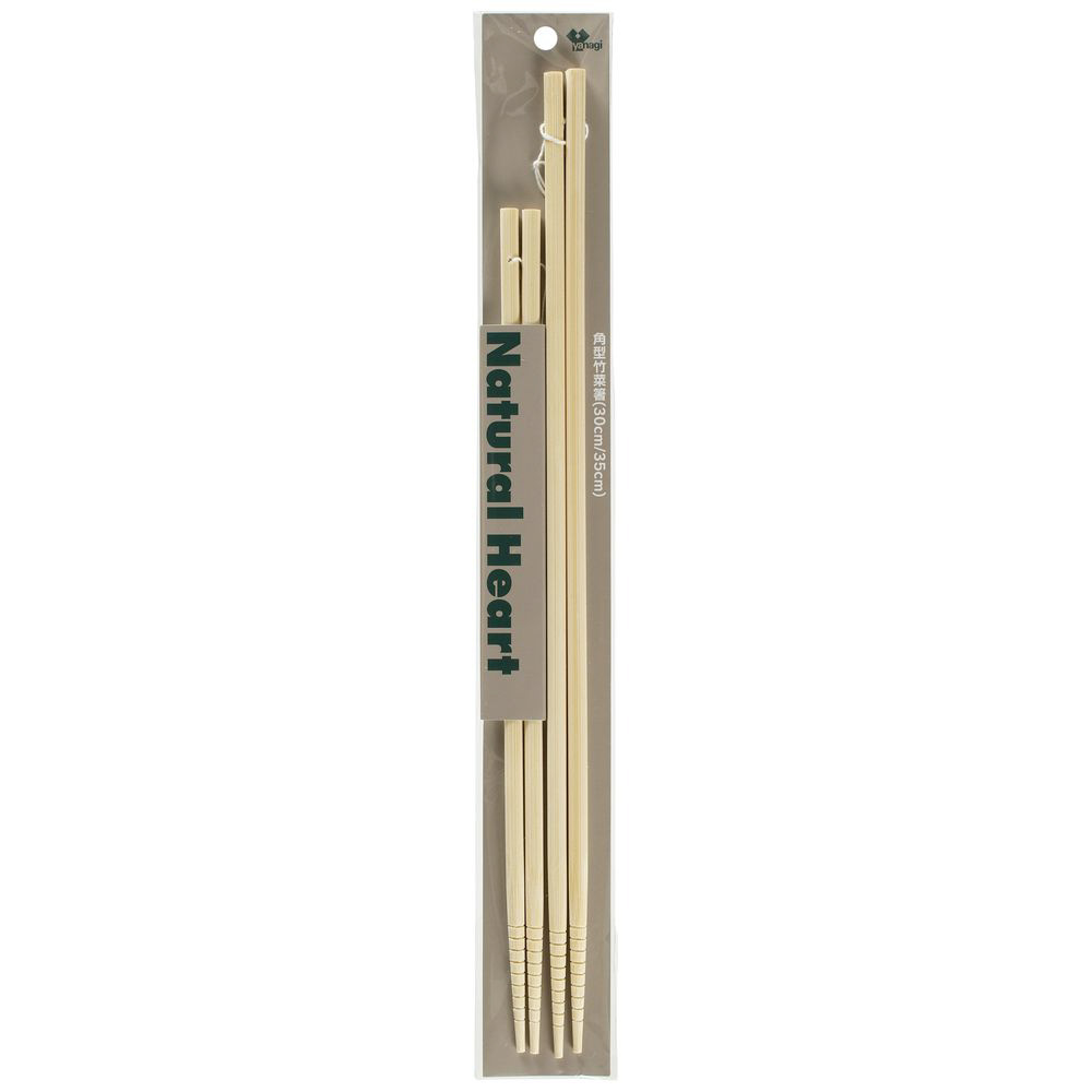 角型の菜箸です。持ちやすく転がりにくい形状です。樹脂加工のフライパンにも安心の天然竹です。