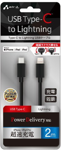 USB PD(Power Delivery)に対応し、iPhoneやiPad Proの超急速充電も可能なType-C to Lightningケーブルです。
