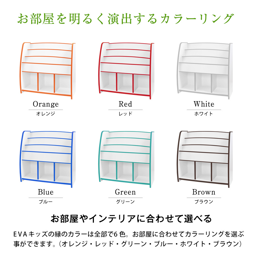 EVAキッズの縁のカラーは全部で6色。お部屋に合わせてカラーリングを選ぶ事ができます。(オレンジ・レッド・グリーン・ブルー・ホワイト・ブラウン)