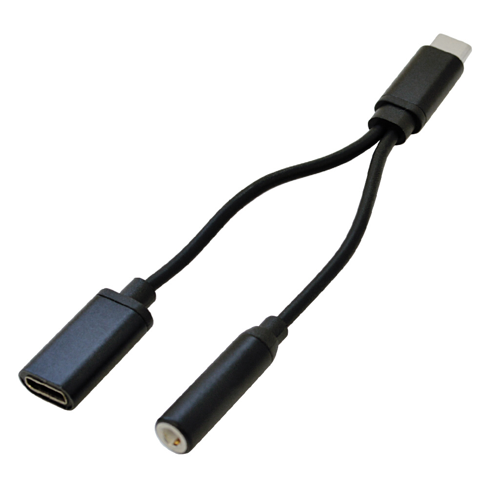 TypeC-3.5mmイヤホンジャック アナログ変換+TypeC充電口 BK