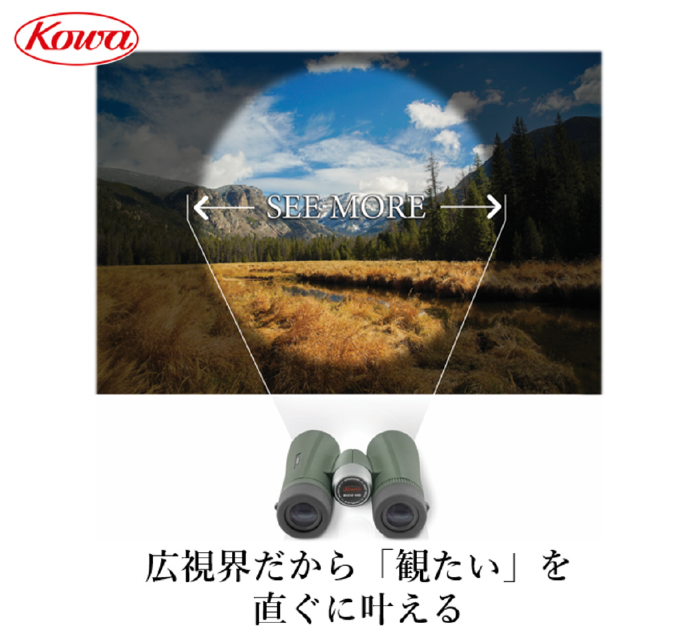 広視界設計なので、バードウォッチングや様々なアウトドアでの使用にお勧めです。