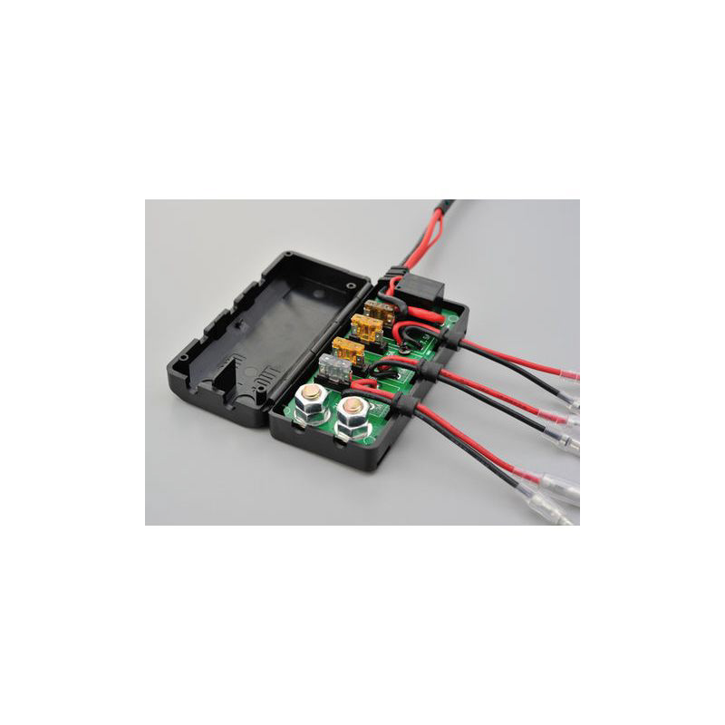 内蔵の低背ブレードヒューズを交換することで、必要なアンペア数に設定することができます。