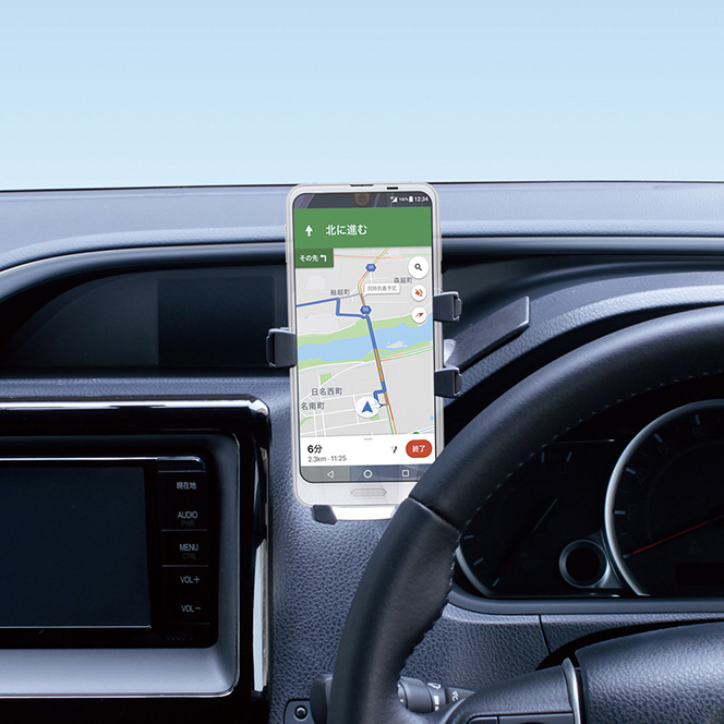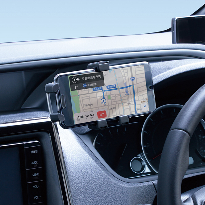 専用設計で内装にピッタリフィットするスマホホルダー。