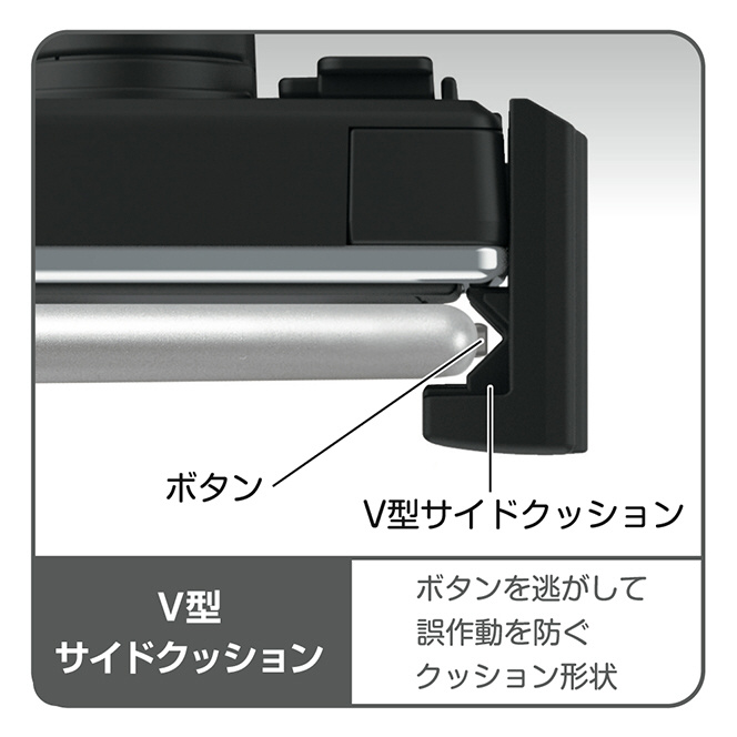 スマートフォンが接触する箇所にはガタツキ音を防止するシリコーンラバークッション付き。