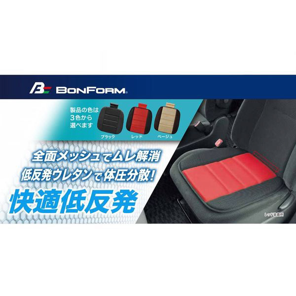 5339-43BK シートクッション メッシュフィット 軽/普通車用 ヒップ型 低反発ウレタン サイズ:45×2.3×45cm カラー:ブラック