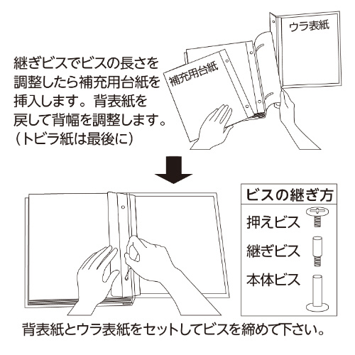 必要に応じて台紙を増減できるビス式タイプ。 (専用スペア台紙は別売りです。※品番:XP-38P)