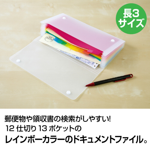 中身が検索しやすく、出しやすい12色のグラテーションが美しいレインボーカラーのドキュメントファィル