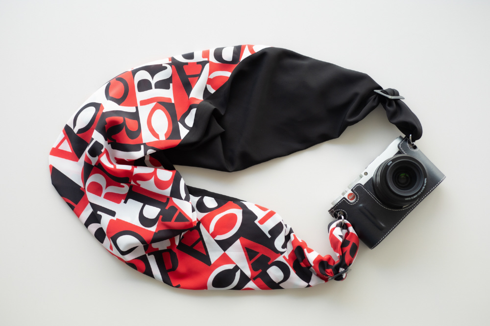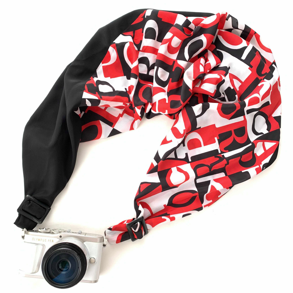 ストールの様な生地で作られているので、つけ心地、肌触りが良いカメラストラップ。