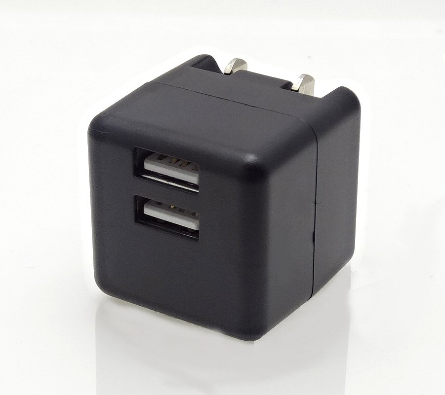 干渉しにくい キューブタイプAC充電器  USB-A 2ポート 100-240V