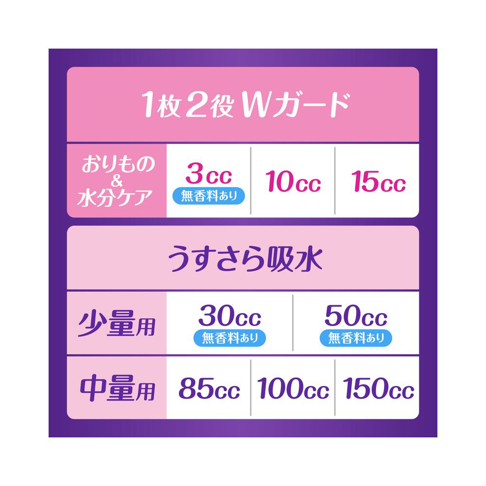 動いてもずれにくい超消臭ぎっしり詰まった強力吸収体!超スピード消臭技術!ヨレ防止スリムシート!横モレ防止デザイン!長さ18cmに変更しました