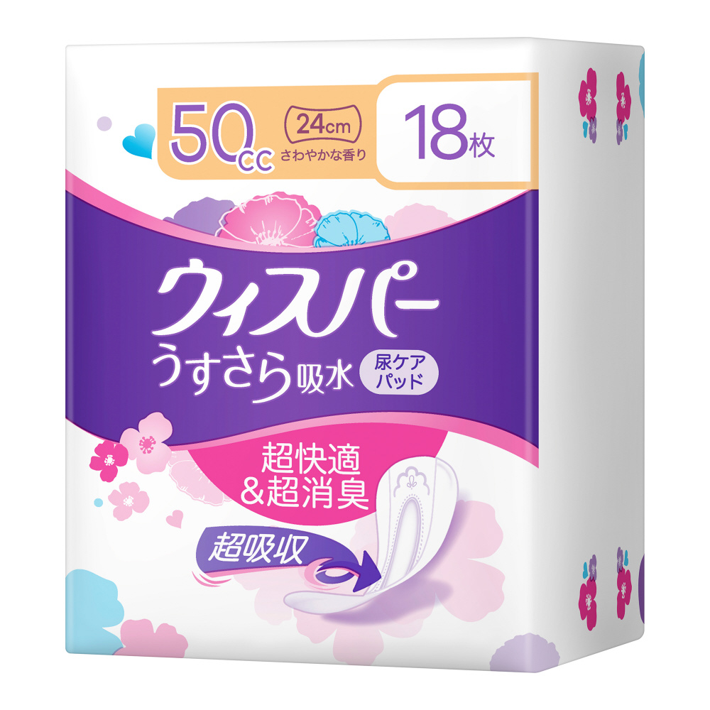 ウィスパー うすさら吸水 女性用 吸水ケア 50cc 中量用 昼用ナプキンサイズ 18枚入り 24cm (中量の尿モレ用)