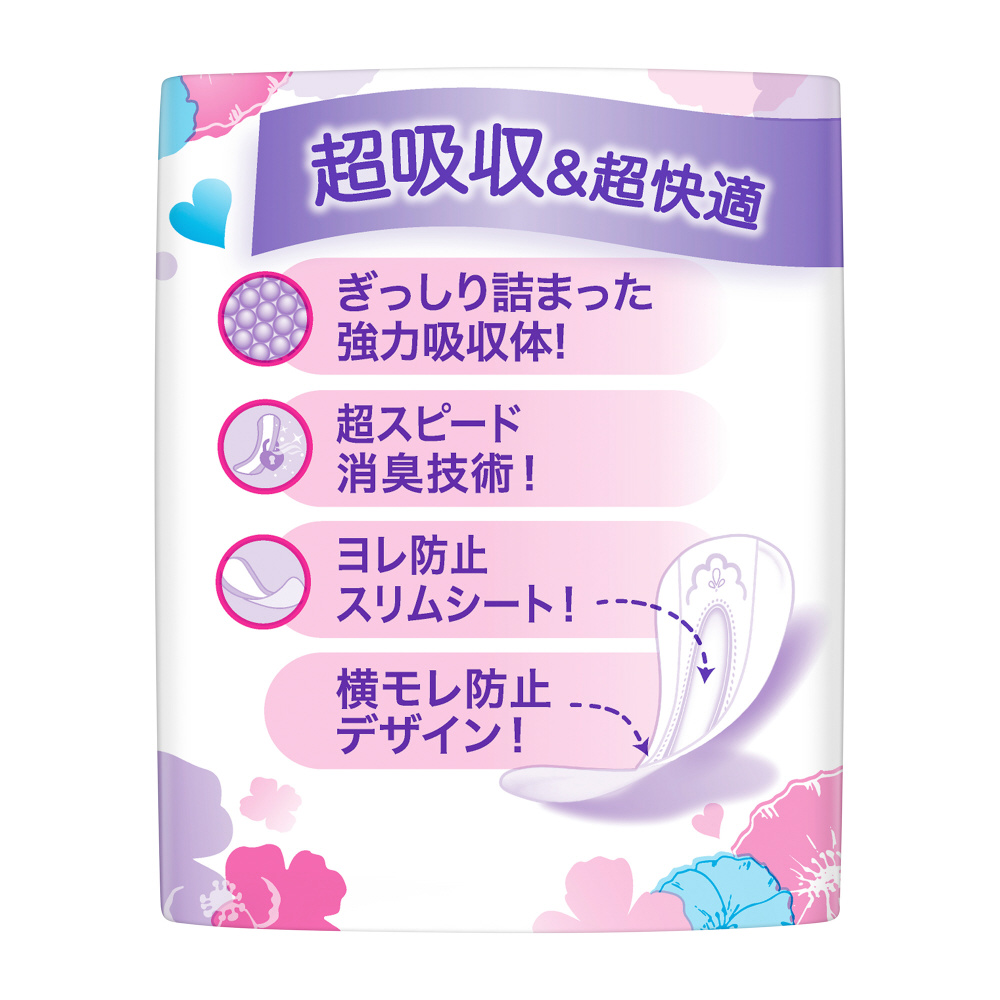 うすさら吸水 ウィスパー吸水ケア超スピード消臭技術安心の少量用昼用ナプキンサイズヨレ防止スリムシートで、サッと吸収、スッと消臭さわやかな香り模様のある中は センター吸収ゾーン生理用ナプキンではありません。吸水ケア、吸水ナプキン、にょうもれパッド女性用