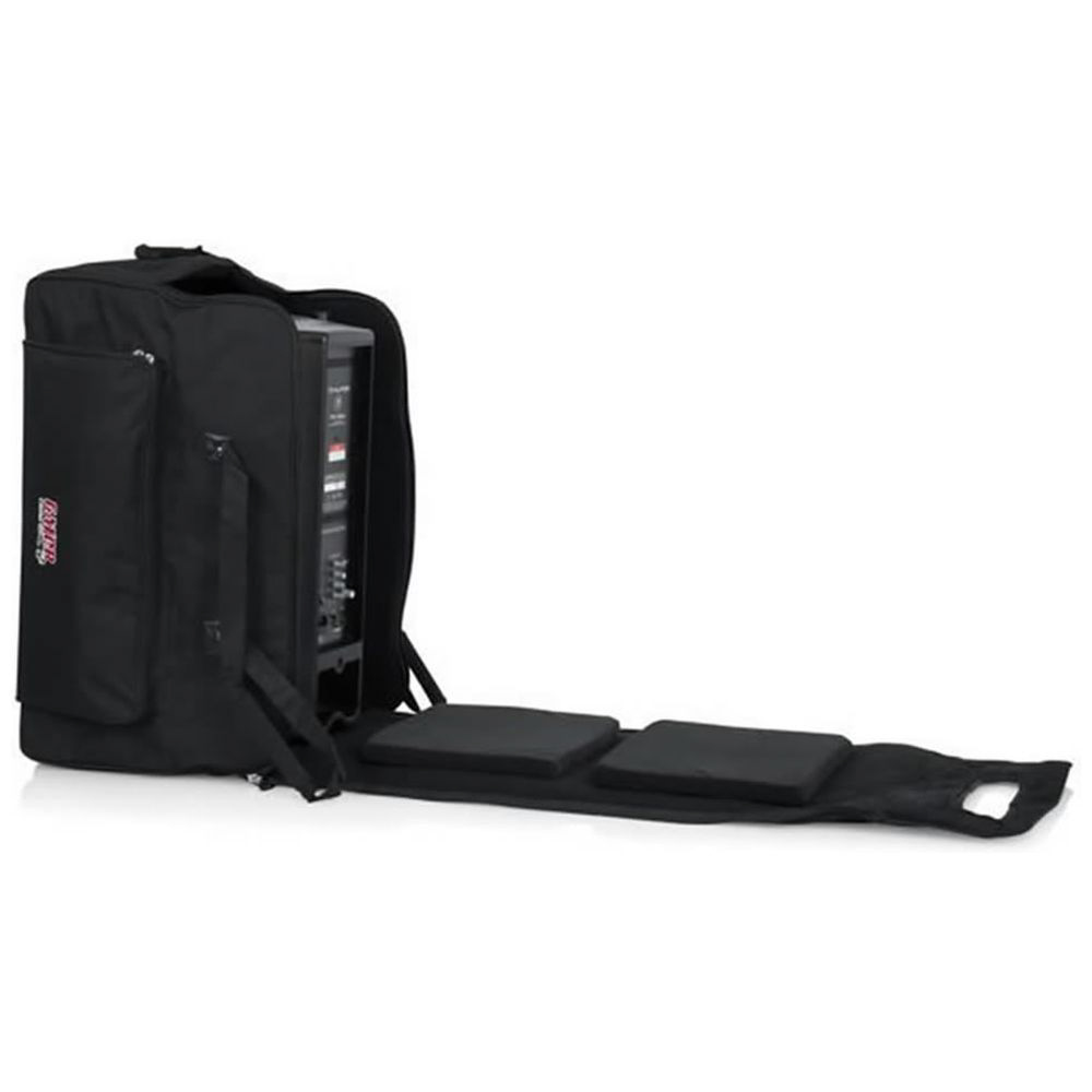ローリング・スピーカー・バッグ。頑丈なナイロン構造 + 10mm のサイド・フォーム 。小物の収納に便利なアクセサリーポケット搭載 。