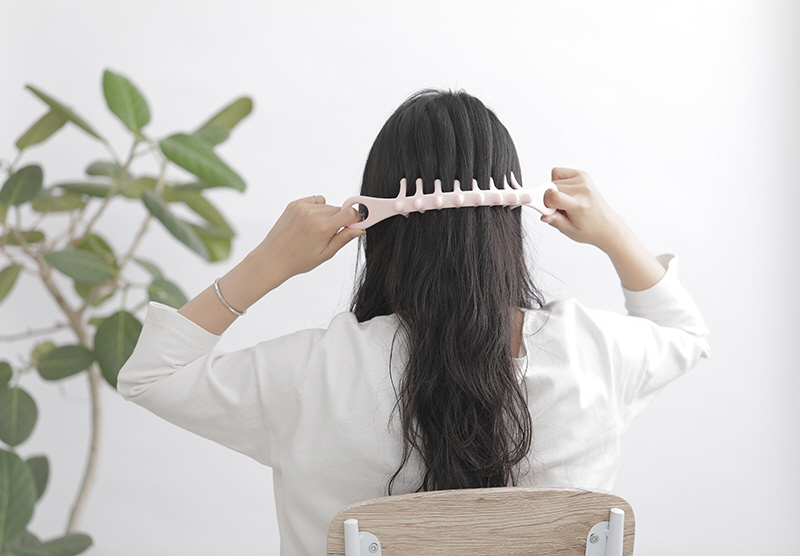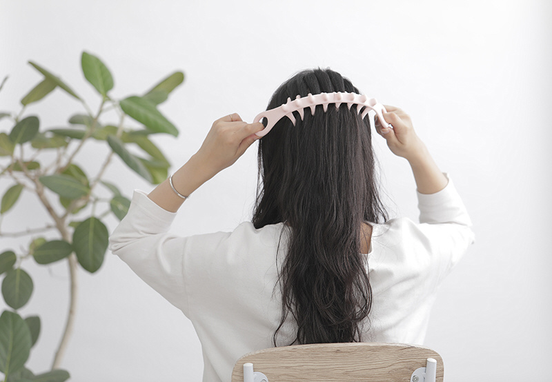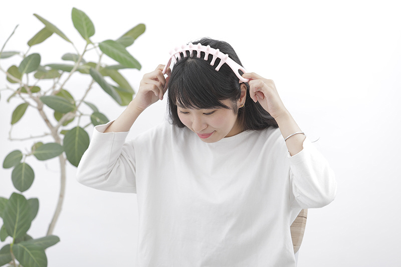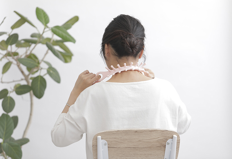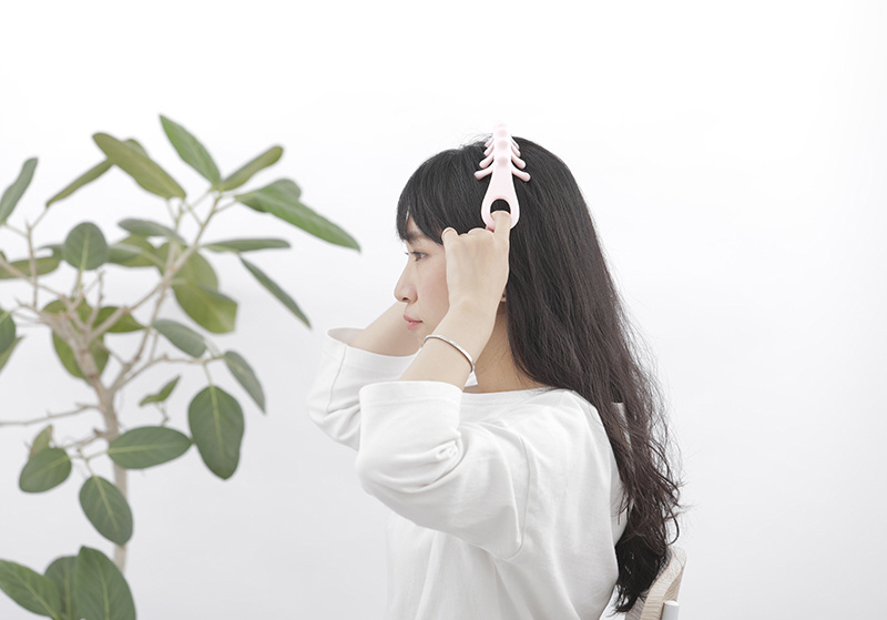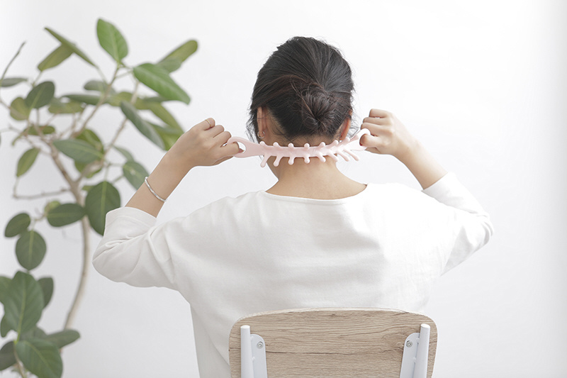 2種類の突起で「揉む」「流す」「押す」ができる。後頭部や首にもフィットして、しっかりほぐせる。
