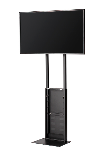 場所をとらない背の高いスタンド。画面センター目安1900mm。壁際に設置可能。コンパクトでフラットなベース。アンカー固定専用商品。