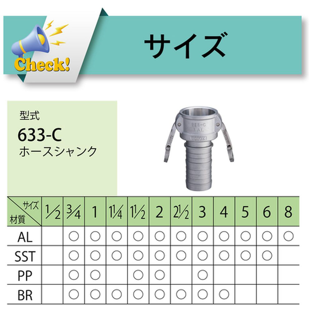 トヨックス カムロックカプラー ホースシャンク アルミ 633-C3/4AL