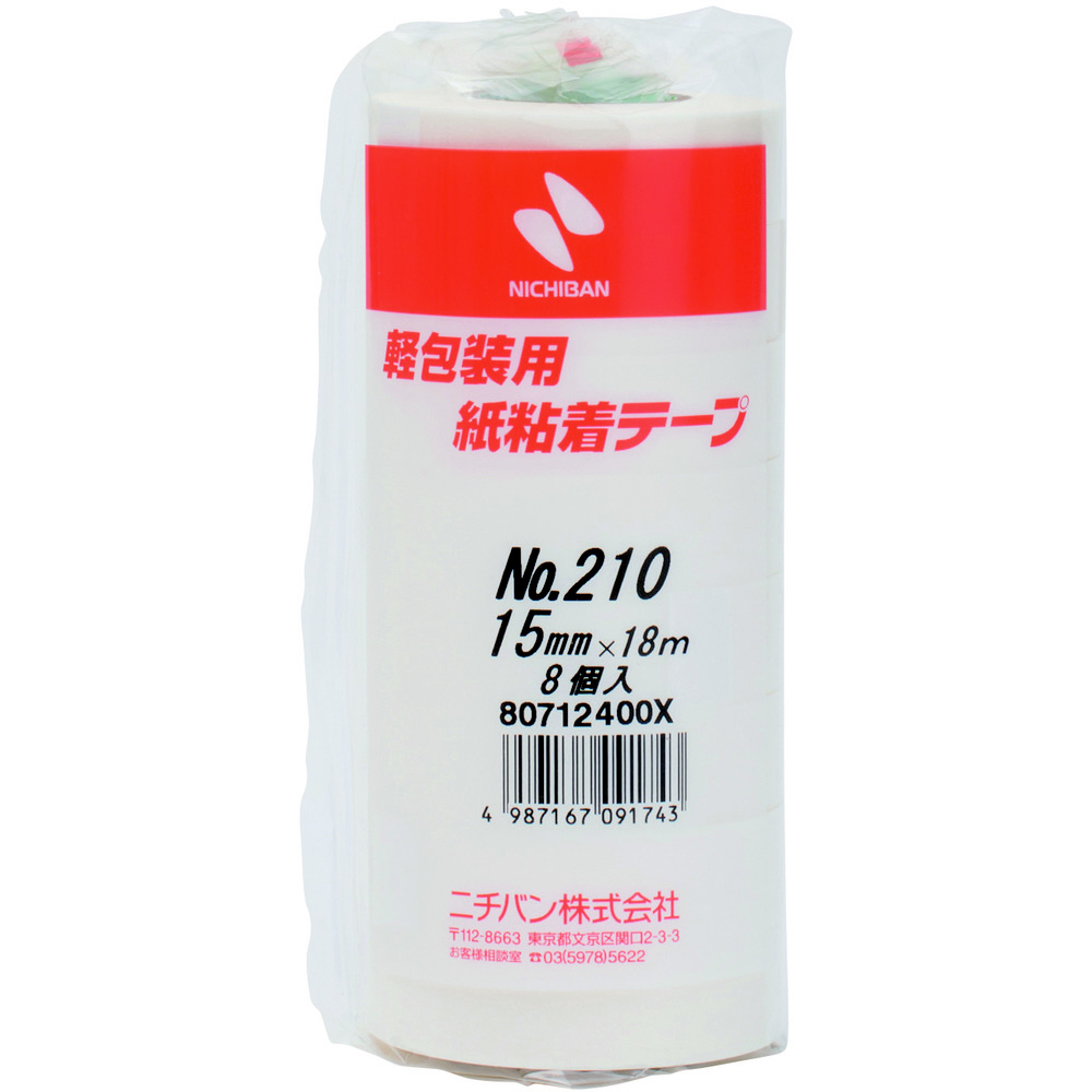 ニチバン 紙粘着テープ210H−15 15mmX18m 8巻入り 210H-15