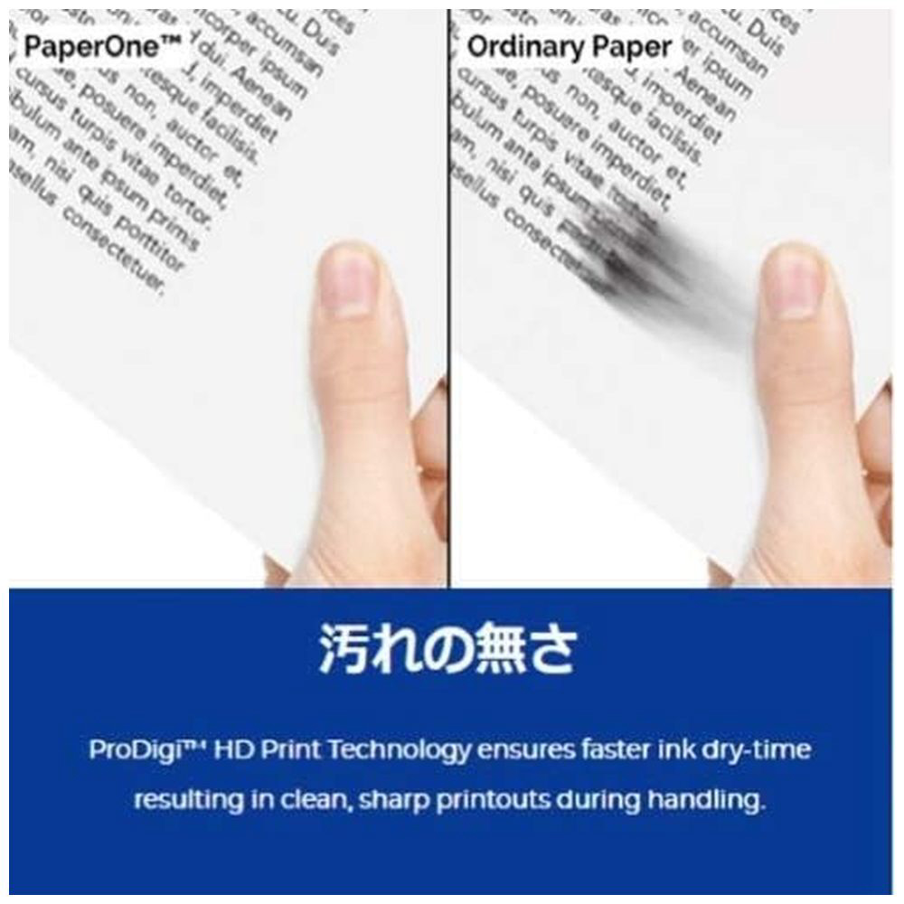 PaperOne Copierは、レーザープリンターと大量コピー機向けに作られているので、均一な平滑性と性能を提供して、一つ一つの印刷で高品質を実現し、製作上の問題が起きないようにします。 グラフとテキストは、最も要求水準の高いユーザーにとってさえも鮮明で読みやすく見えます。 ProDigi HDプリントテクノロジーにより、PaperOne Copier紙は、普通紙よりも表面の摩耗が少なく、プリンタードラムの保護にも役立ちます。