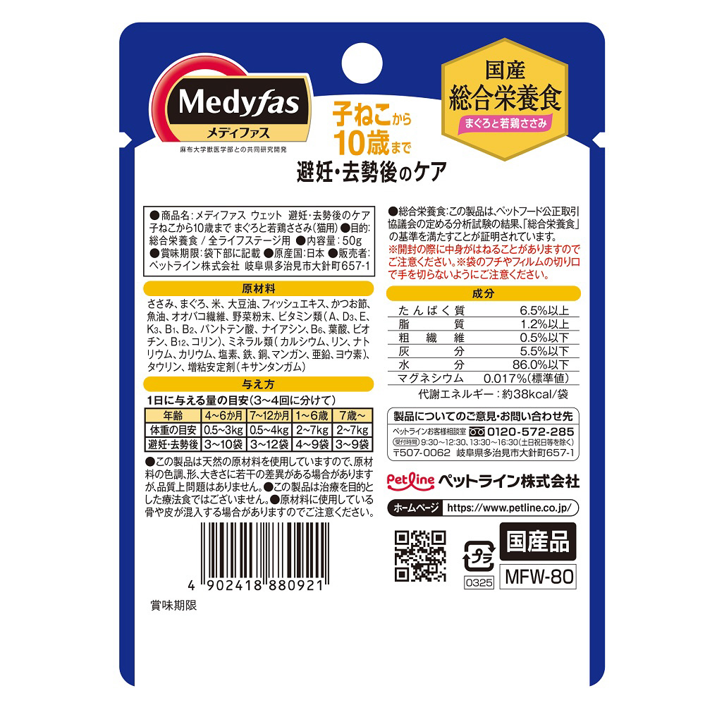 メディファスウェット 避妊・去勢 まぐろと若鶏ささみ 50g