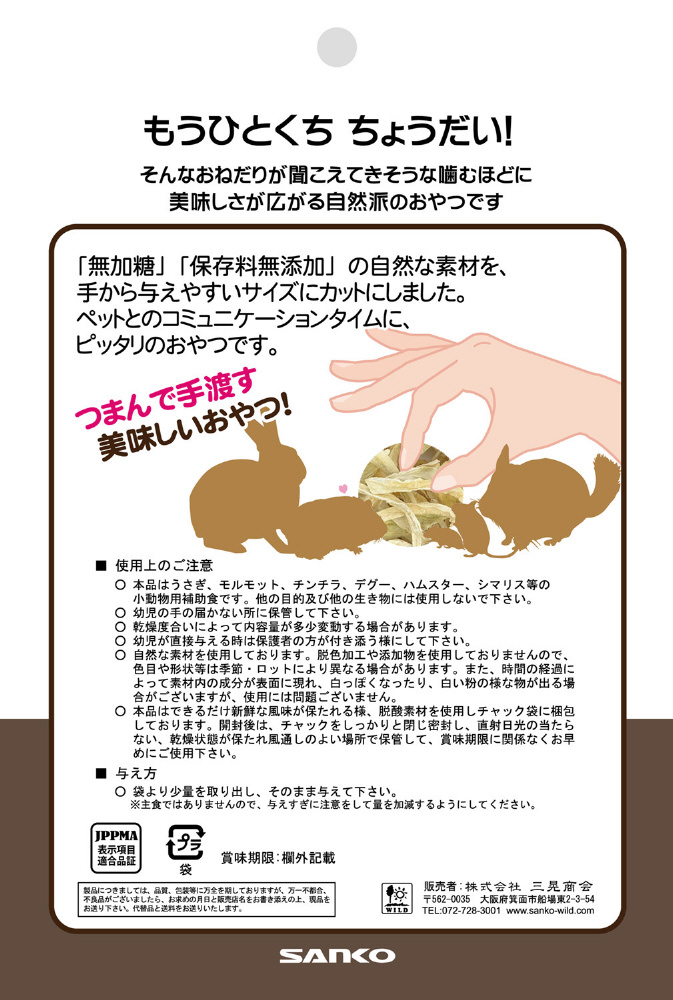 【保証成分】粗タンパク質2.8%以上、粗脂肪0.9%以上、粗繊維3.5%以下、粗灰分1.4%以下、水分8.4%以下