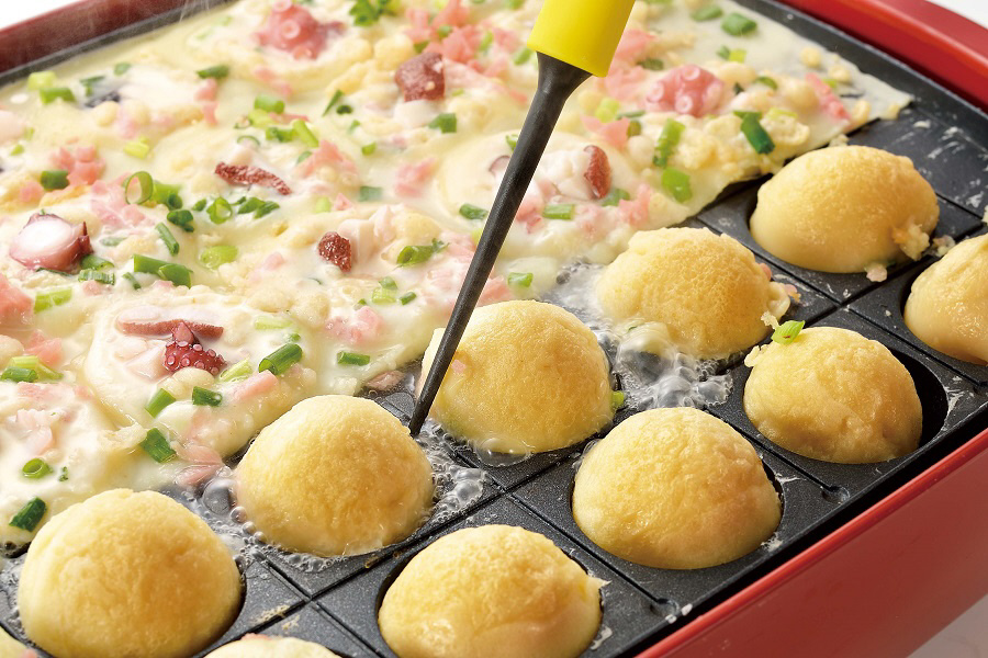 フッ素加工のたこ焼き器を傷つけにくい、耐熱樹脂製のたこ焼きピック。