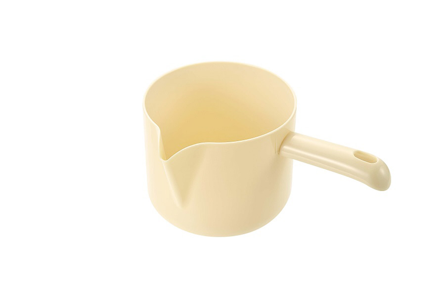 深型・広口形状で粉が混ぜやすい、片手で握りやすいハンドル付きの粉つぎ。