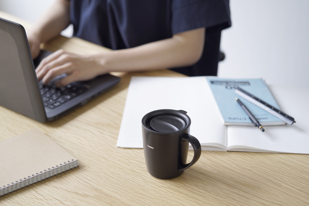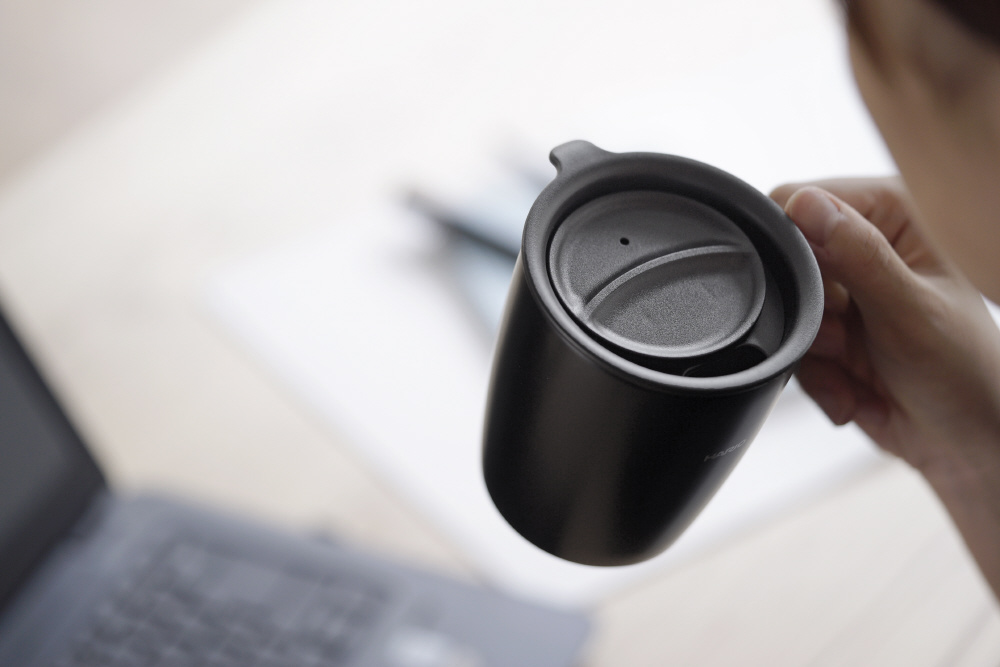 オフィスや自宅での使用に便利なフタ付き保温マグ。